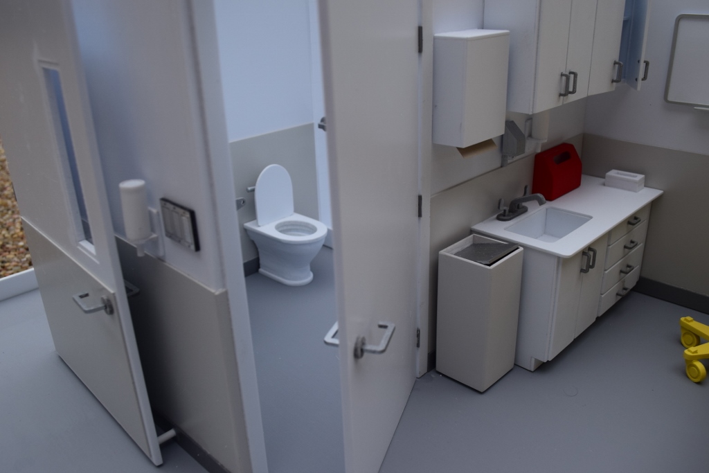 Full color pull apart model for 'GREEN VISTAS', a start-up charity that proposes to convert surplus shipping containers into housing for homeless Veterans. Built at 1:24 (1/2 inch = 1 foot)
