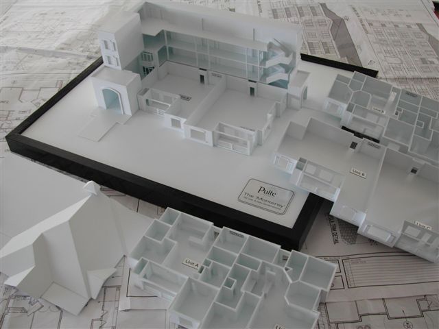 Pulte 'Monterey' Condominiuns, pull apart model. Showing entry Atrium and apartment floorplans